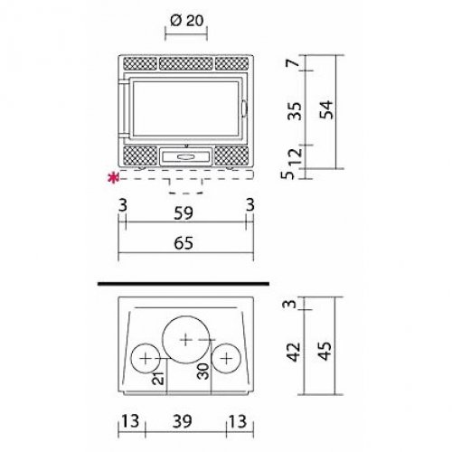 - Внутренние размеры топки, см 55х28х29h