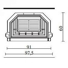 Корпус каминной топки выполнен из жаропрочной стали, колосники и патрубки из чугуна.